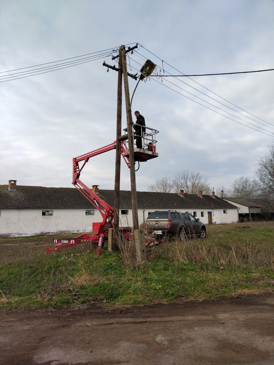 magasban végzett villanyszerelési munkák kosaras személyemelőről
